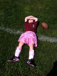 The morning would start out very good. Natalie would be all excited about seeing her friends and was happy to see and hear us cheering all during practice. She would stop to wave at us and throw kisses. Run over for some water and wait patiently for the snacks that would be handed out after the game. She would be all smiles!