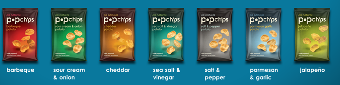 Did I mention Pop Chips – 120 calories a bag – so many flavors to choose from. Never fried – never baked.