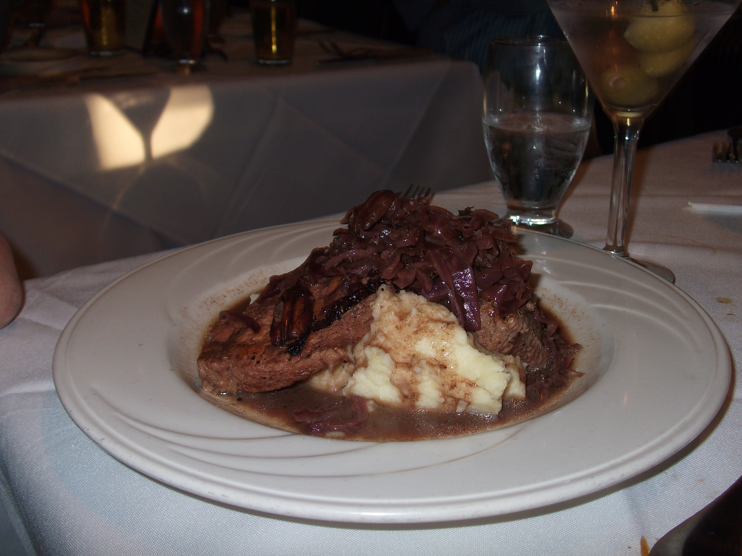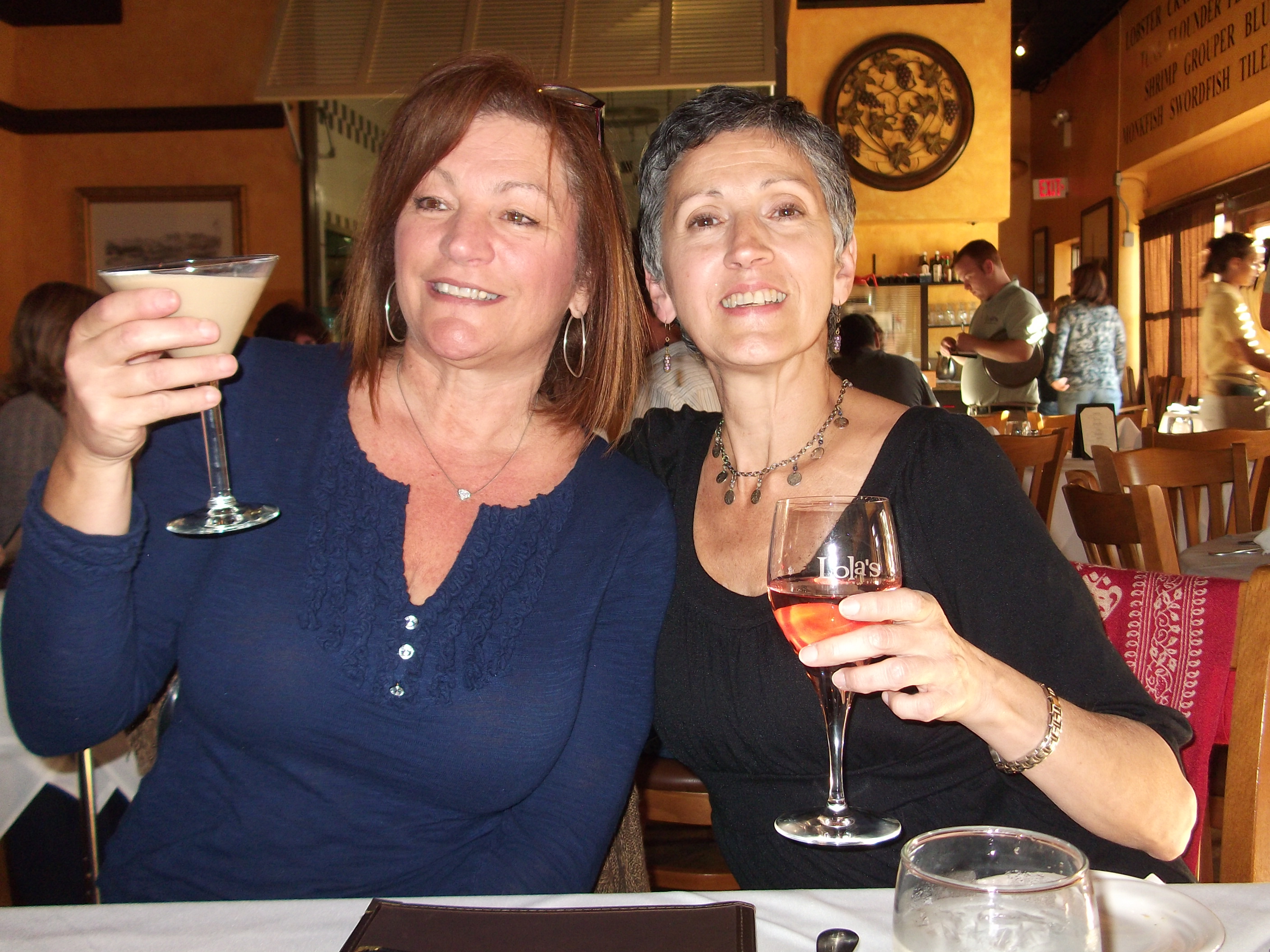 As soon as we sat down, Liz and I ordered a Martini, straight up, shaken not stirred, with three olives. The Martini was shaken to perfection, we complimented the bartender and twisted our arms to order another one…My sister, she had a Cappuccino Martini and Maryann had wine…they liked their drinks, but the original Martini was truly the best.