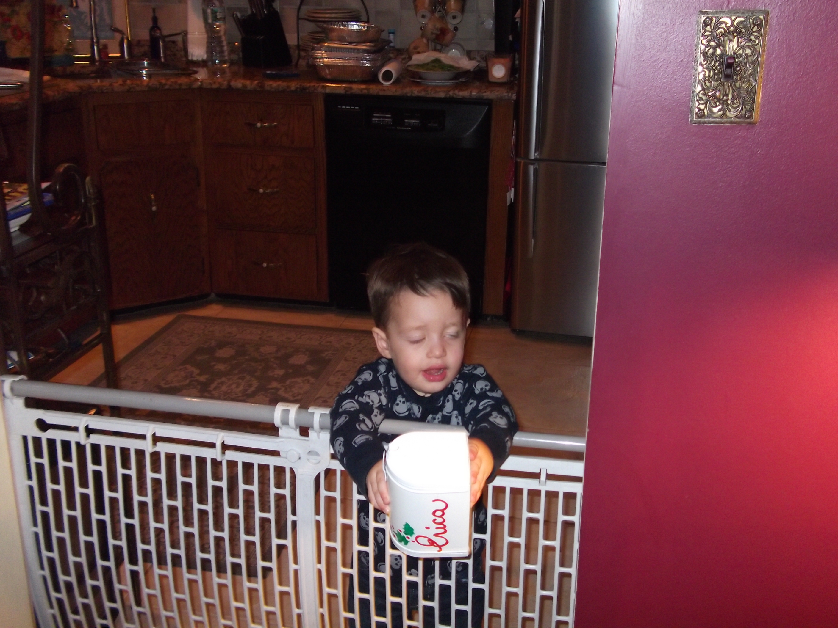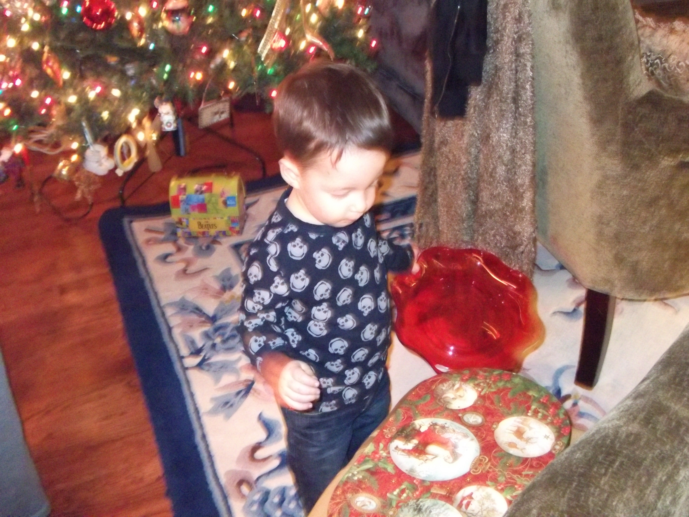 No, no Christian, that is not your Christmas gift and the tray is not a toy.