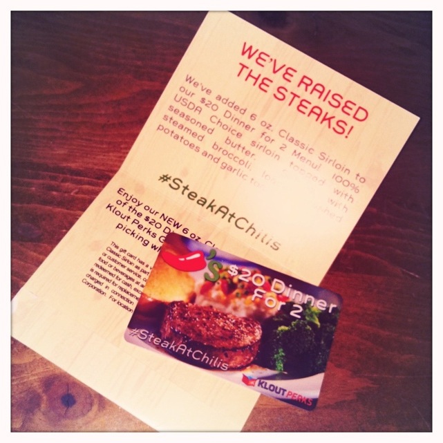 That’s when Vera remembered she had received a perk gift card from Chili’s. She said two of us had to have the steak dinner on the 2 for $20 menu – Bill and I said, almost at the same time – No problem!!