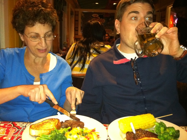The steak dinner was perfect, Bill got the corn instead of the loaded potatoes (I was hungry).