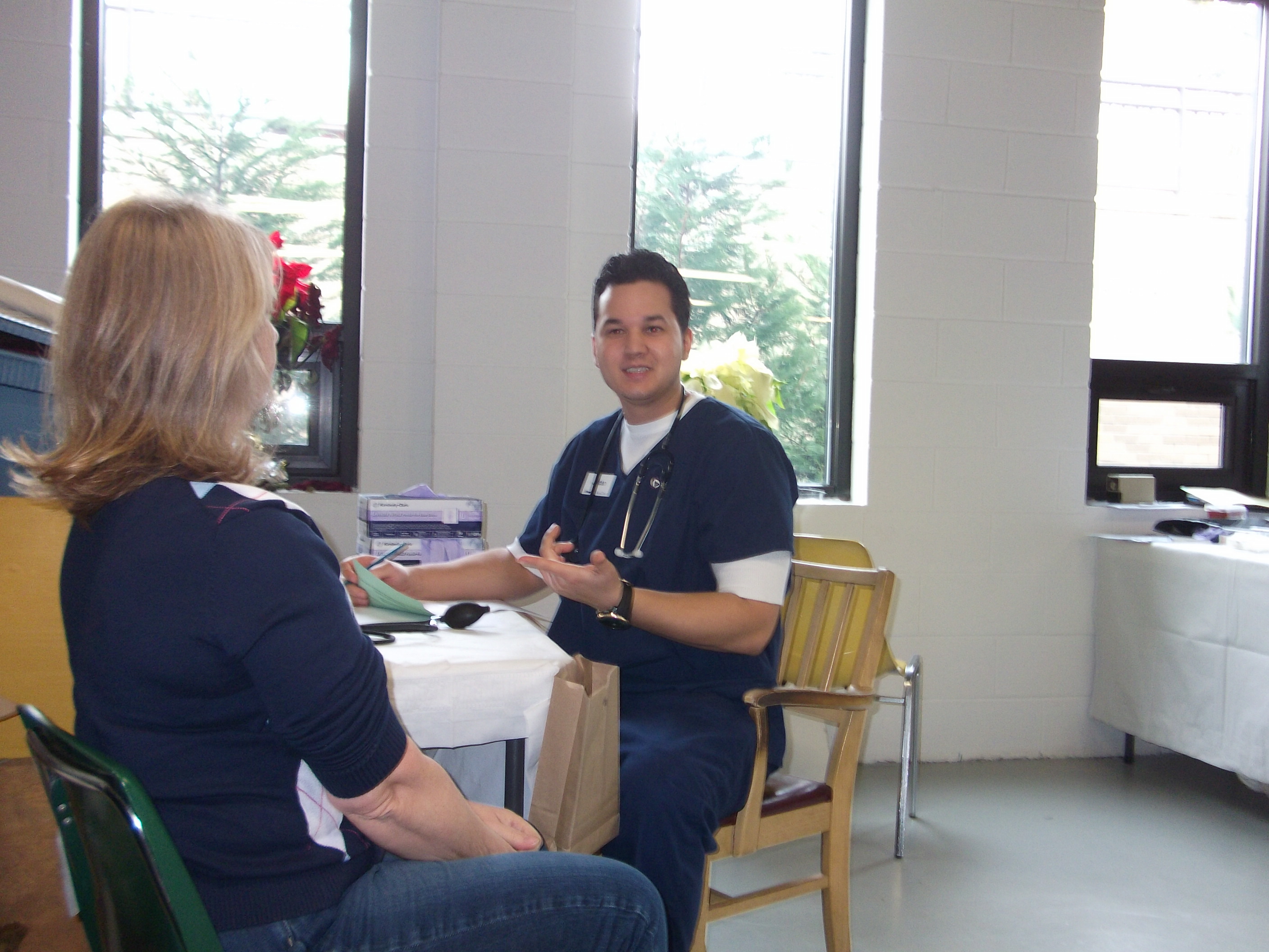 A Red Cross employee. Cute. He would be the finger pricker, OUCH!