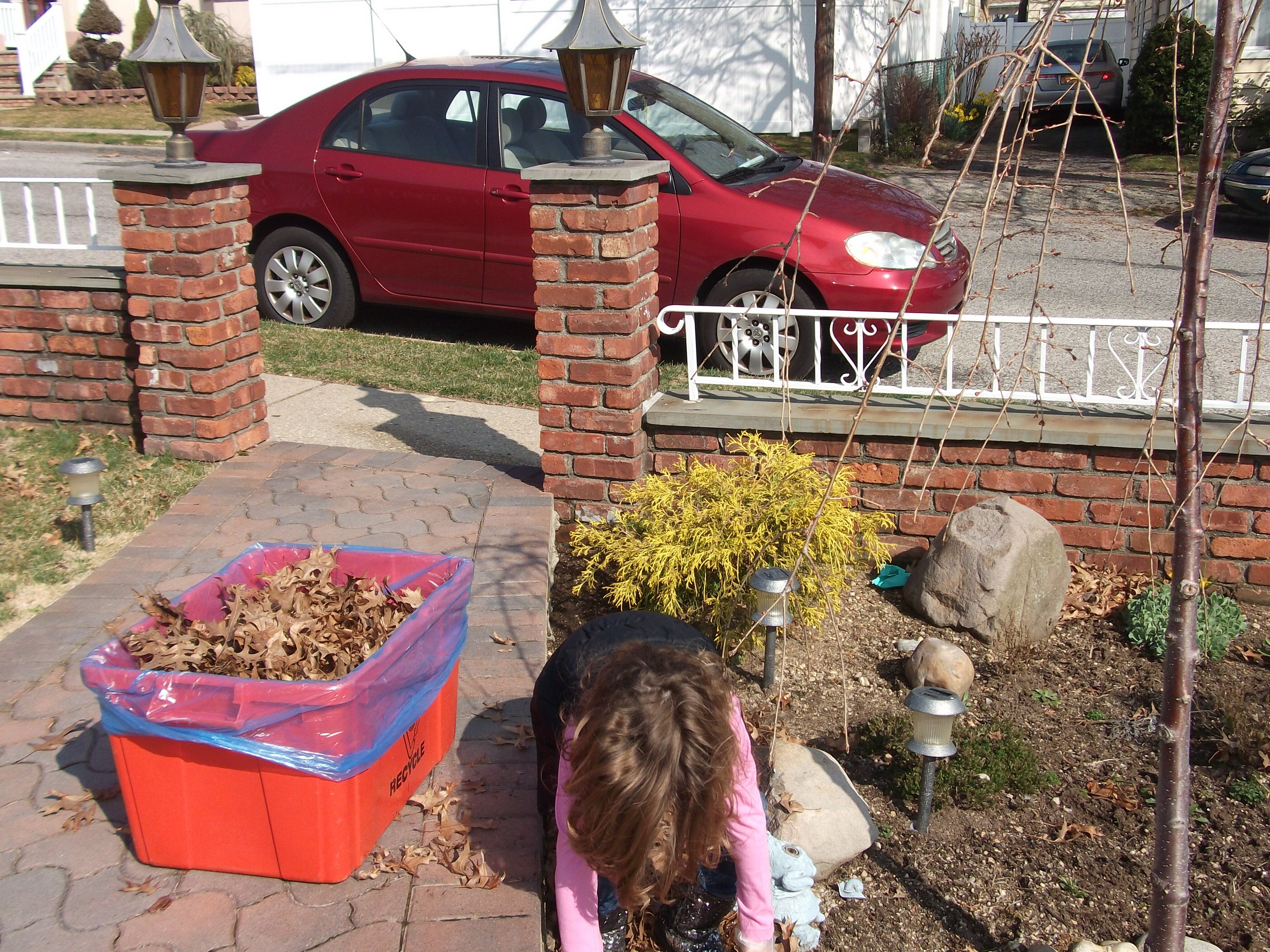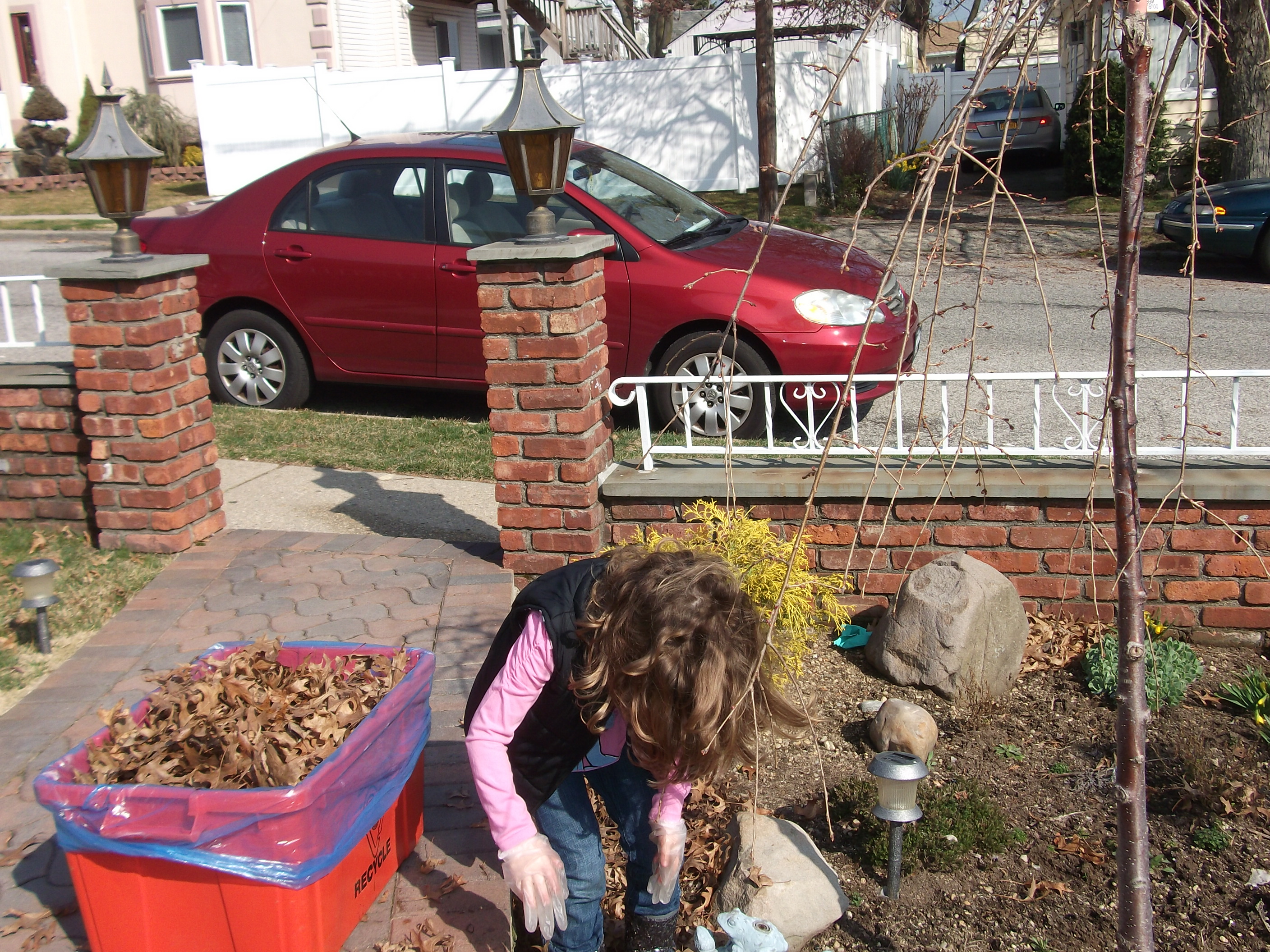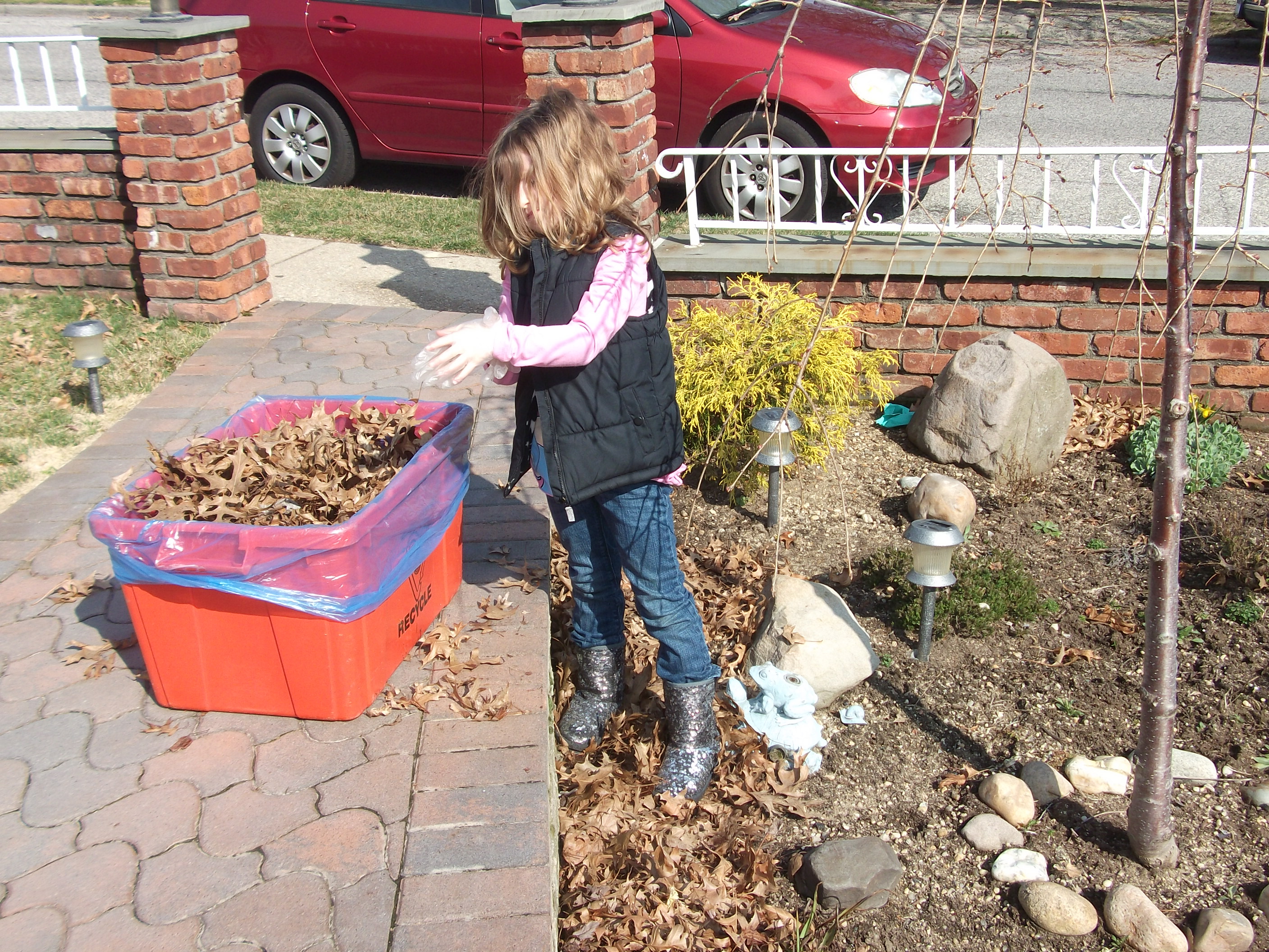 It is always a joyous thing when your grandchildren help you with chores…On this day my granddaughter decided that she wanted to help me clean up the front yard…Really, I thought, let’s see how much she will be willing to do…cleaning up the front yard, after the long winter sleep is not easy, but OK Sophie help grandma get started.