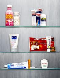 In the Bathroom: Old saline solution, sunscreen and medications. Even unopened saline solution and drugs can quickly become less potent past their experation dates. High temperatures degrade sunscreeen, so replace it once a year.