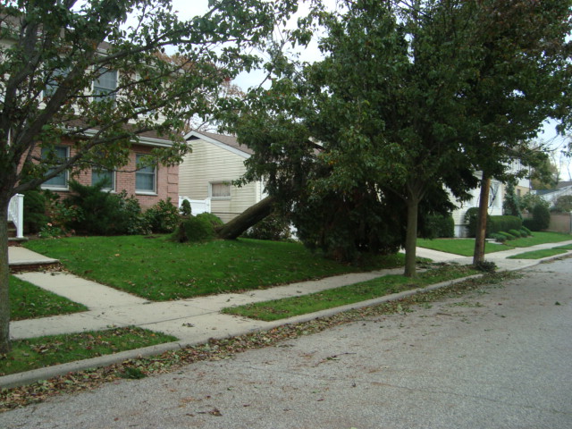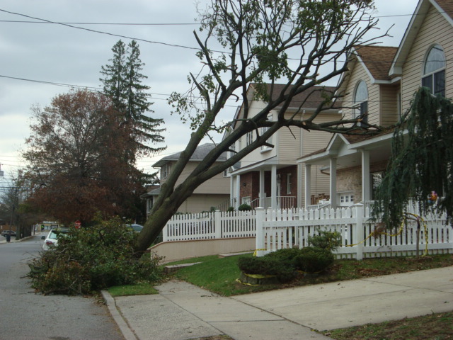 The next day, just around the block, I see my neighbor’s front tree leaning on her home.