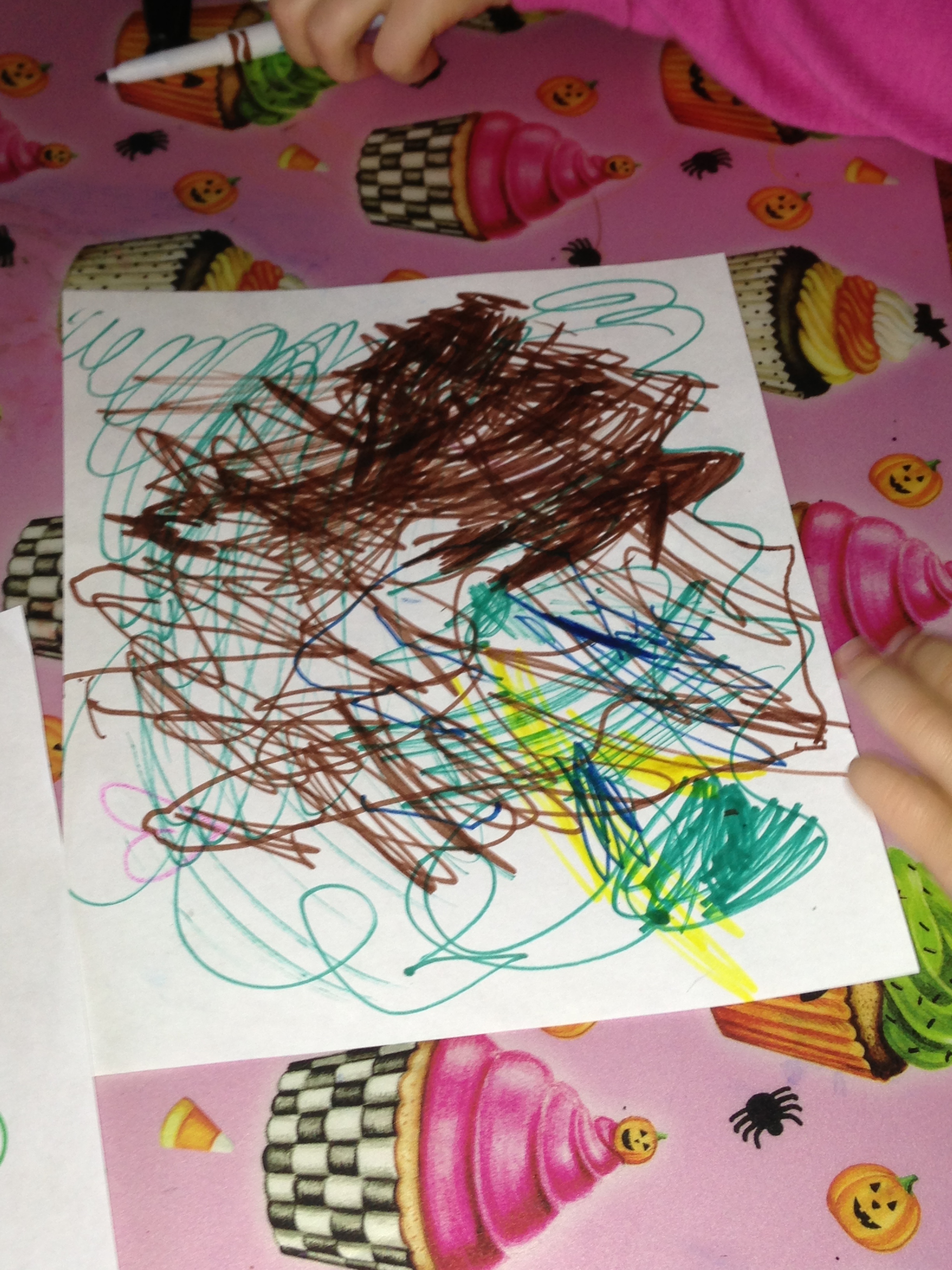 Here is one of their little hands. Not bad for a first time drawing of a Valentine tree. I think this one was created by Natalie.