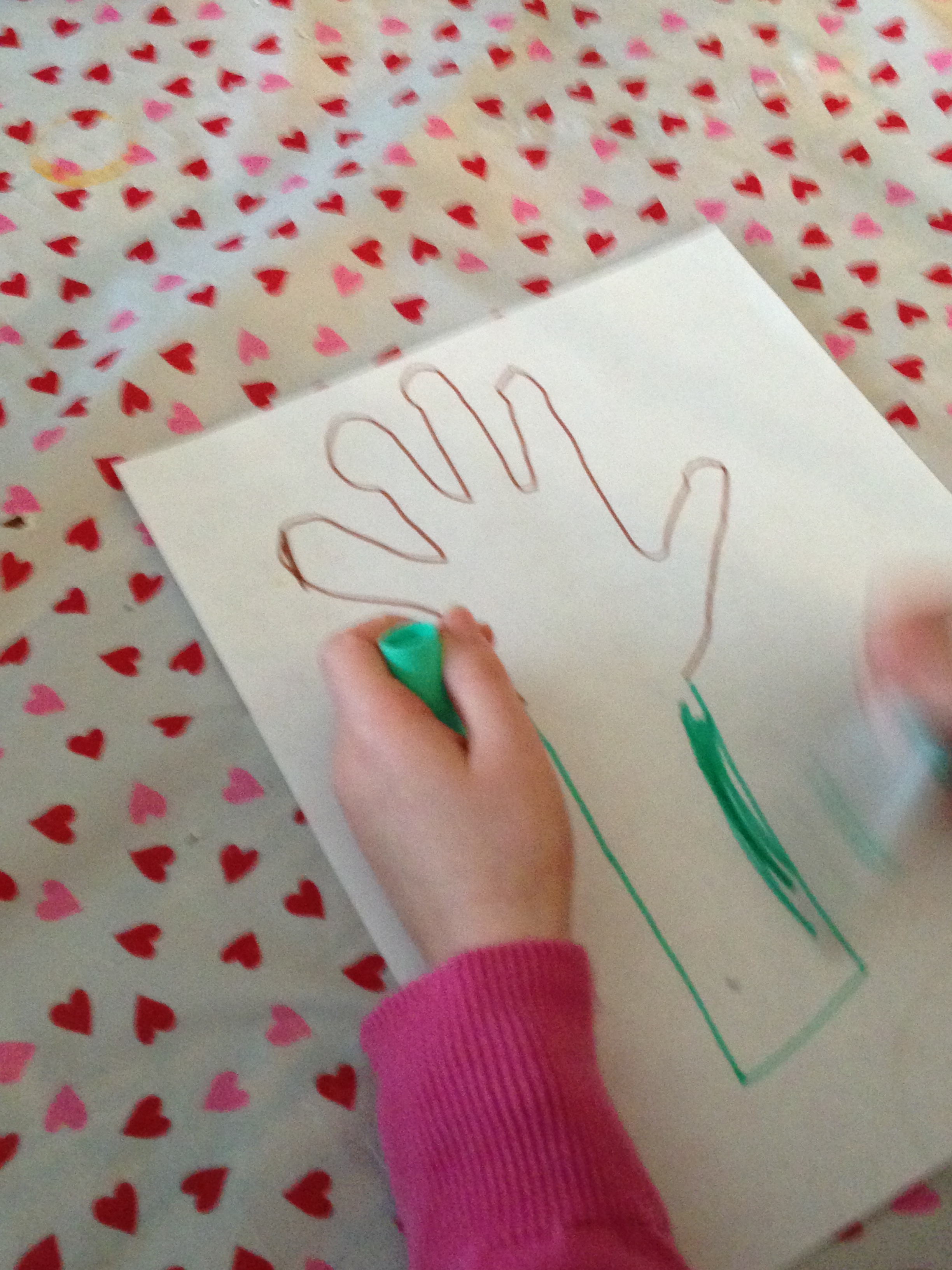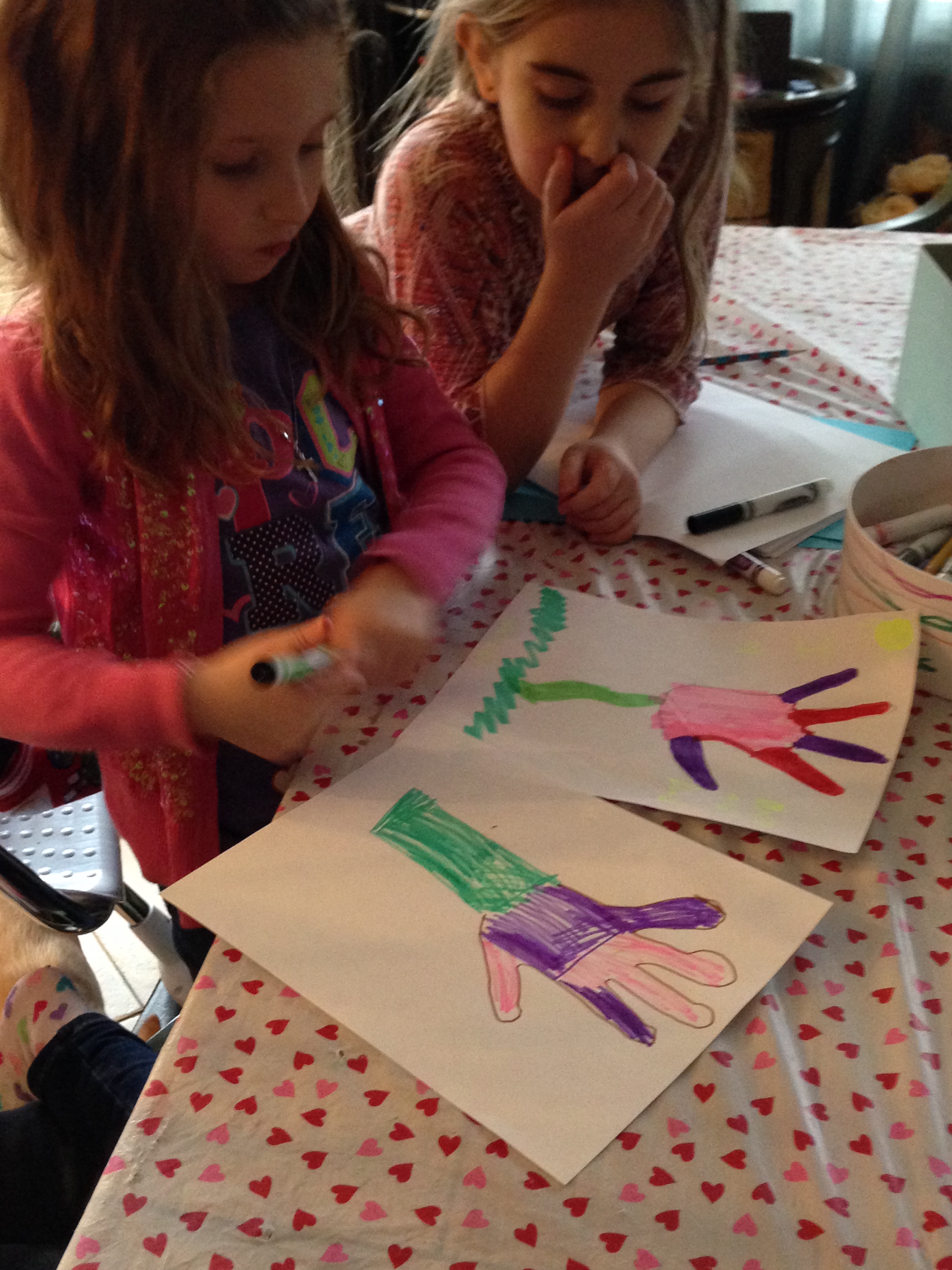 Our girls had no problem drawing their hands and making their Valentine flower.