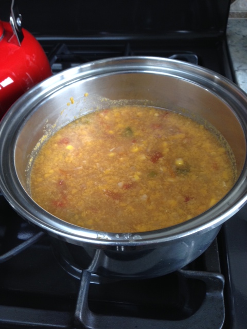 Now making this recipe on the blind was daring of me but since they are really old friends I made a decision to make it for the first time . My husband said I was taking a really big chance making a new recipe without testing it out. I ignored his comment and went shopping for the necessary ingredients. See I figured, if you like corn and tomatos, which I knew they did, then this soup would be tasty good.