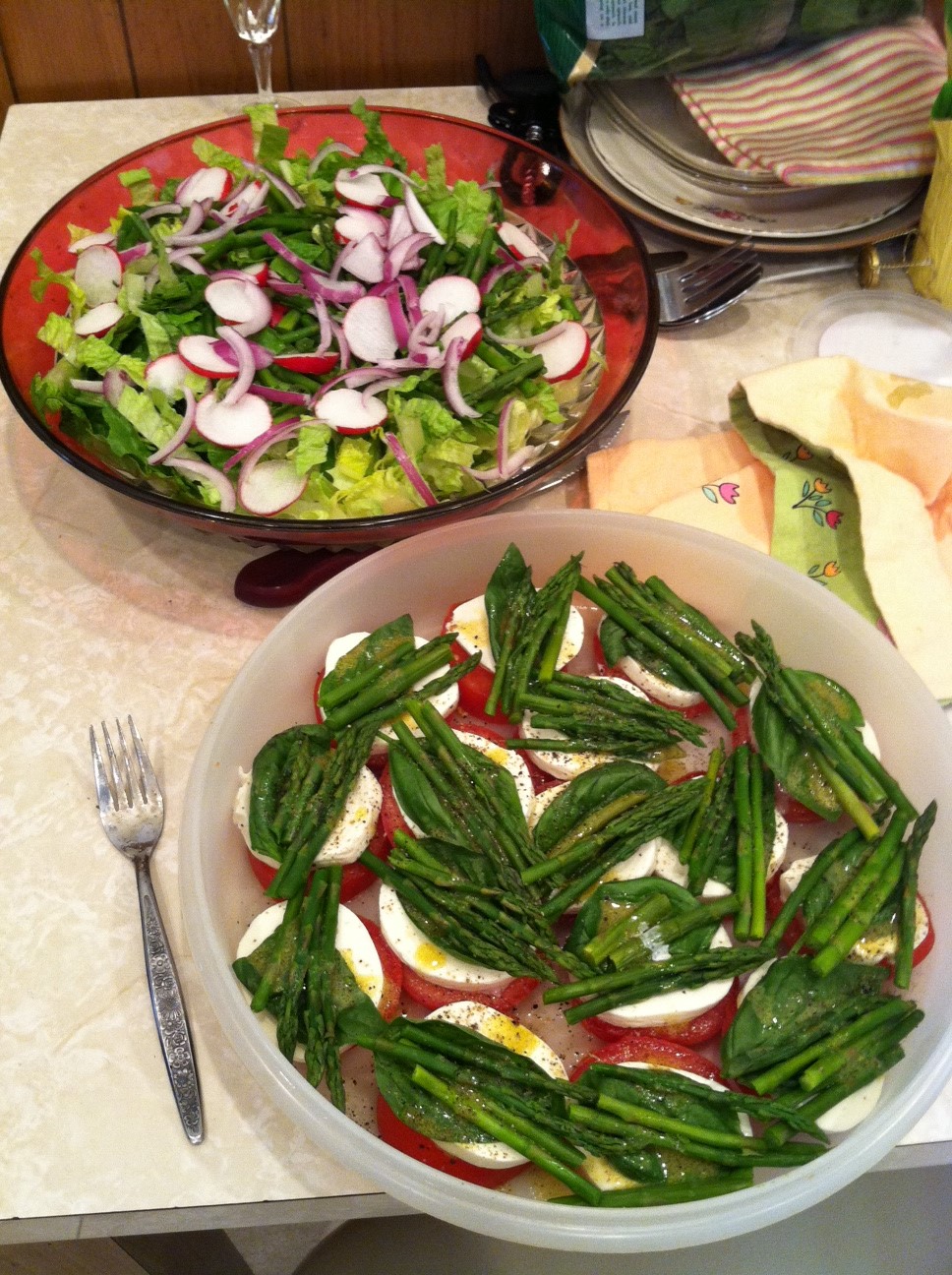 I made two salads, a little something for everyone. There was also roasted potatoes.