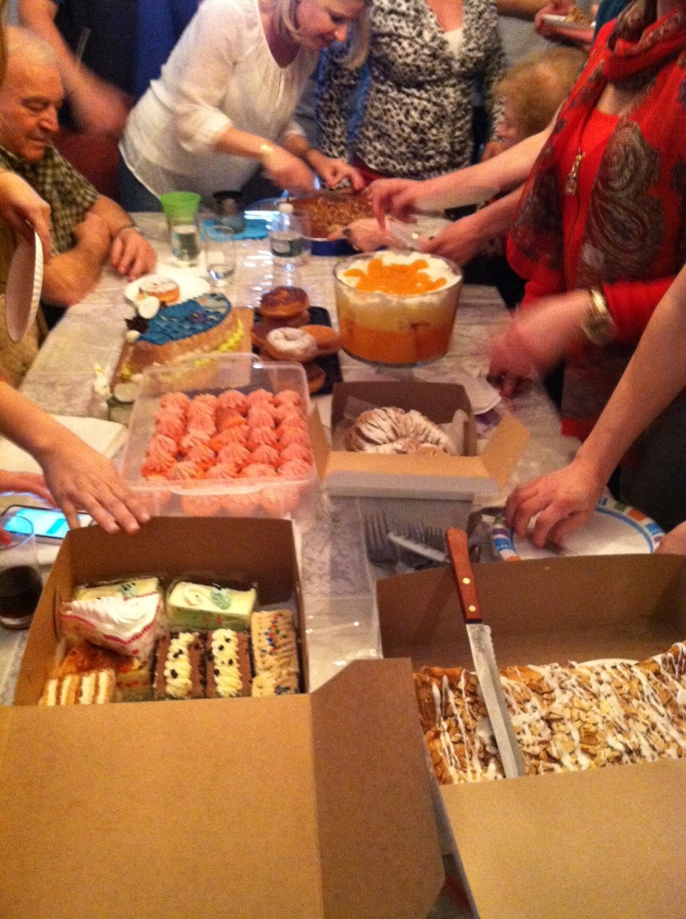 This is the dessert table, what can I say? We take this very serious 🙂 My favorite is Marlenes’ tangerine trifle. She makes it on Easter and New Years Day. I’m looking forward to some more tonight.