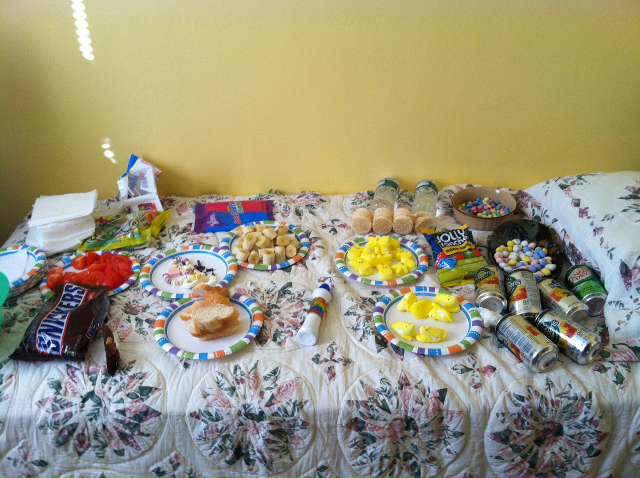 Whatever candy they did not eat, they decided to sell. The made a market on the spare bed. Can you believe they made $18.00?