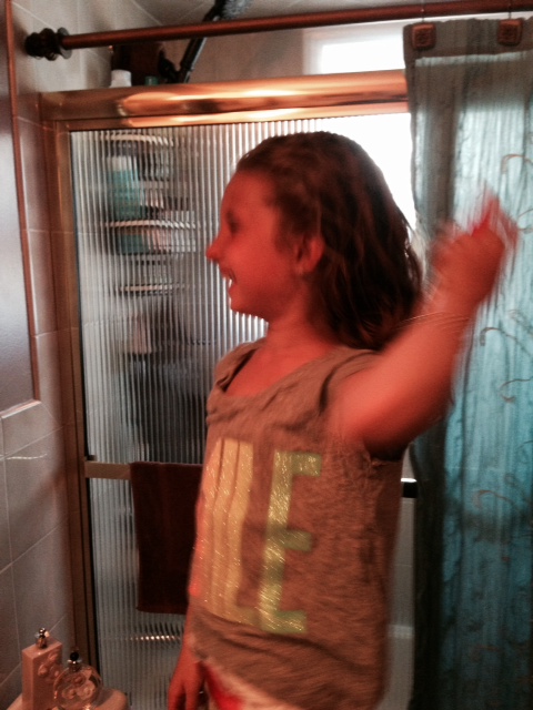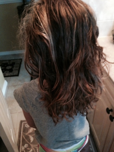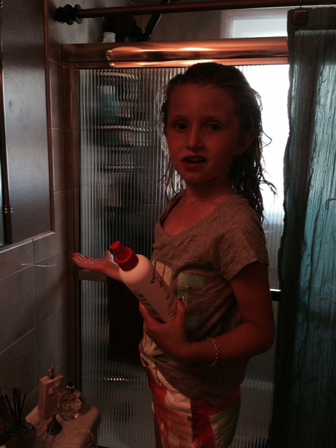 So when Sophie came to my house, right after being in our community pool, I thought this would be a great time to have her try Fairy Tales hair products.