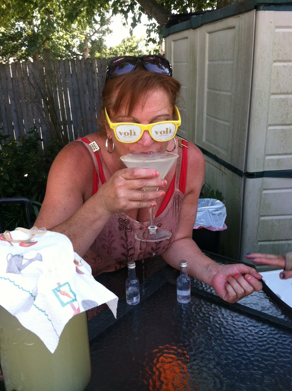 Here is Marlene wearing her Voli Vodka sunglasses sipping away.