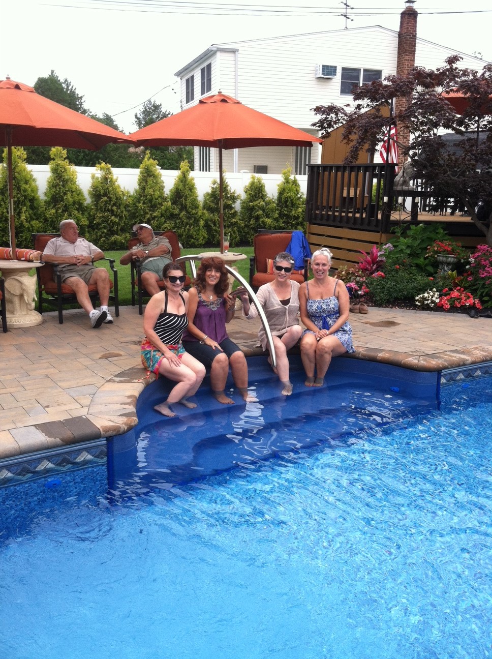 The early bird ladies at pool side. That’s Bobbie Ann next to Merci and our hostess with the mostess, Lisa next to me. Behind us is Merci’s groovin dad Andy and Lisa’s groovin dad in law Joe talking shop.