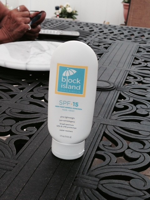 Block Island Organics was the sunblock I brought with me when I recently went to hang out at my neighbors pool. So before we went into the pool my neighbors and I put Block Island Organics all over our exposed bodies. And you know when you are in a bathing suit that is a lot of area to cover.