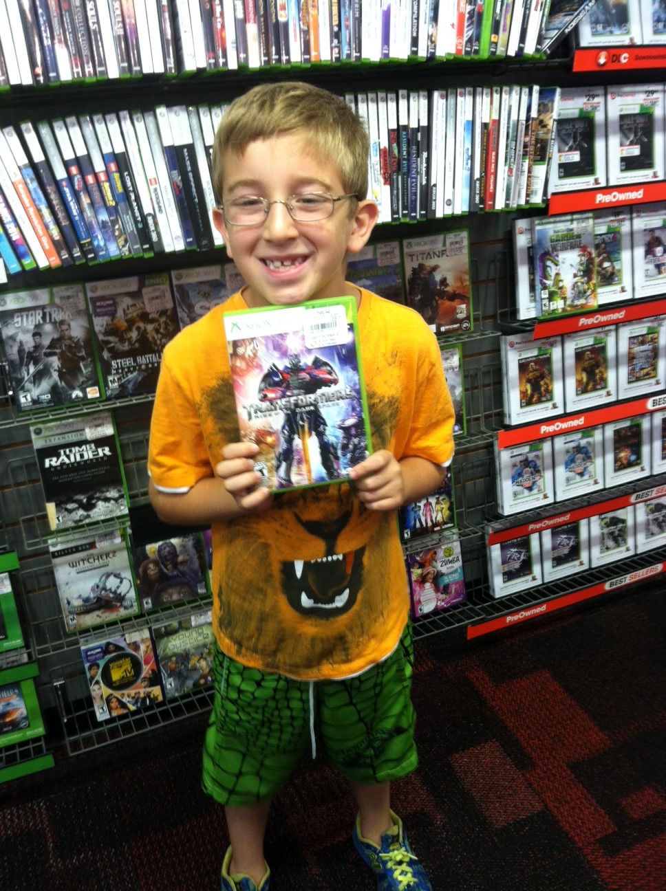 The birthday boy wanted to go to Game Stop and he was so excited to find the Transformers game of the movie we just watched! Love that happy face.