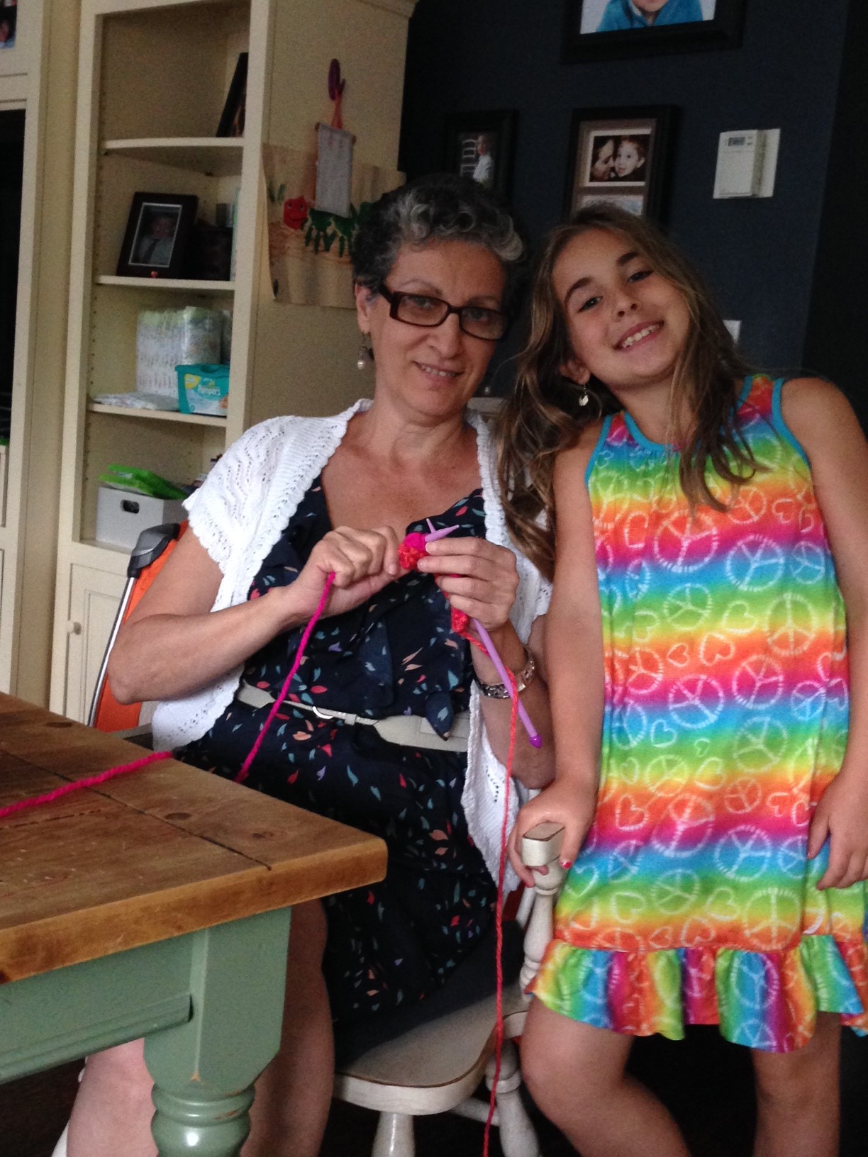 In the morning Natalie said to me, “Grandma, do you know how to knit.” Wow! It has been a very long, long time since I knitted. Mostly, I made scarfs, yeah, just scarfs 🙂 After a few false starts, it finally came back to me, like riding a bike. You remember, somehow you remember. Guess what I’m making? Yep a scarf.