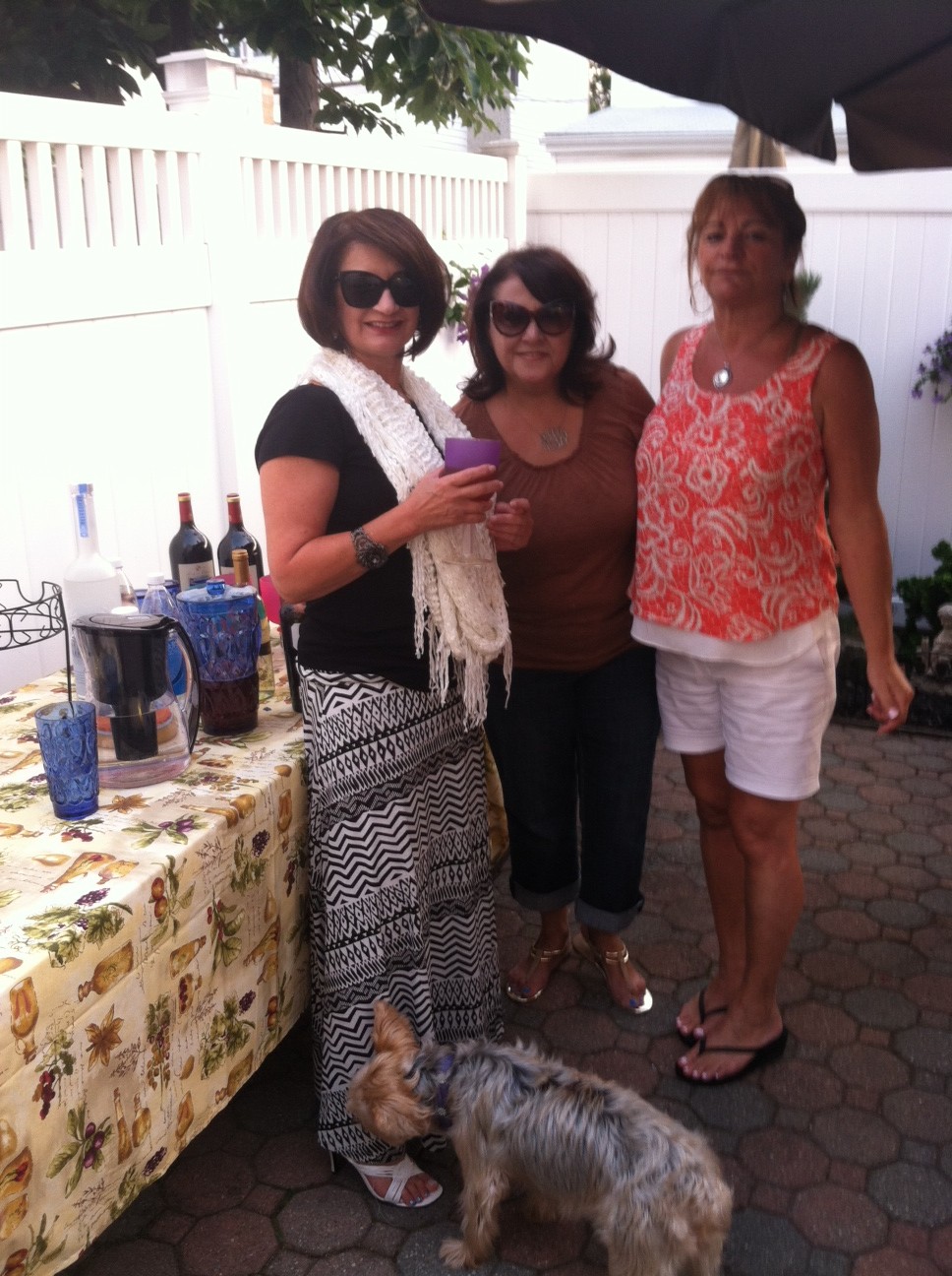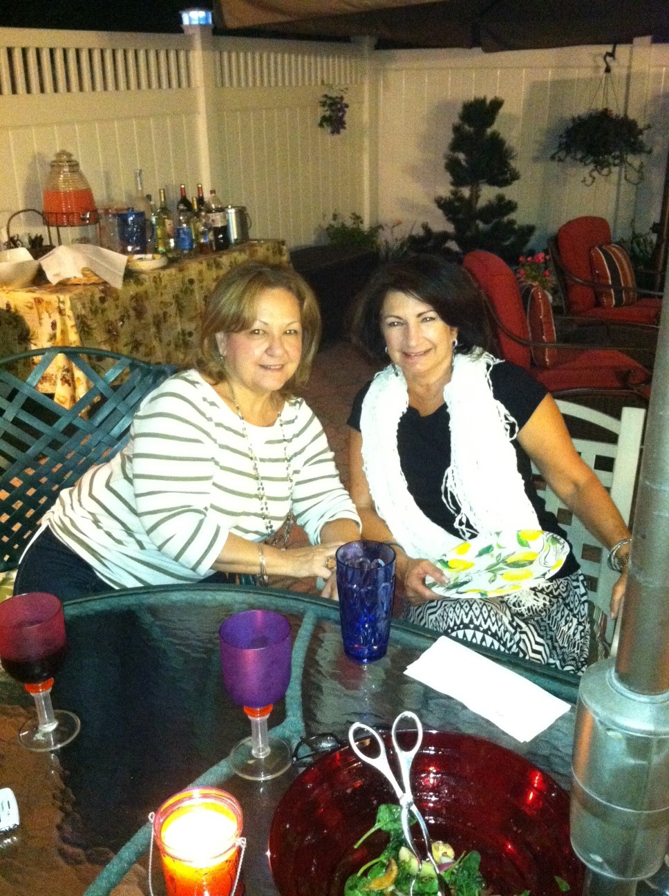 Let’s get together. A common statement we say too many times. Usually a lot of time passes before we get together, or maybe we meet at a baby shower, wedding or funeral. I was so happy with I got the invitation from Mary Ann to join the girls at her house for supper and drinks. We have known each other since, well forever. So many years that we have become family. Mary Ann (third one) in the cat sunglasses was our hostess.