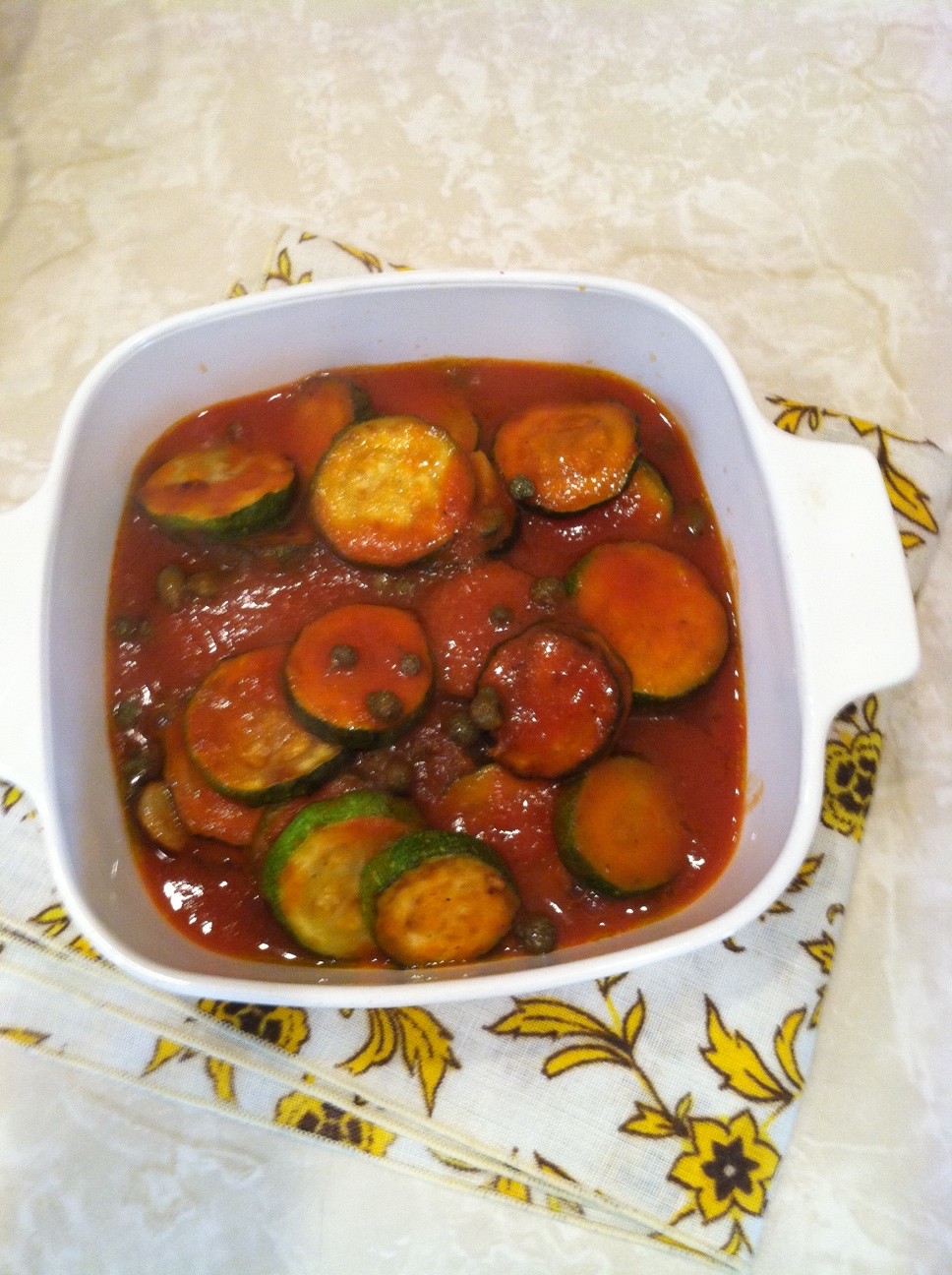 Zucchini & Capers In Tomato Sauce.