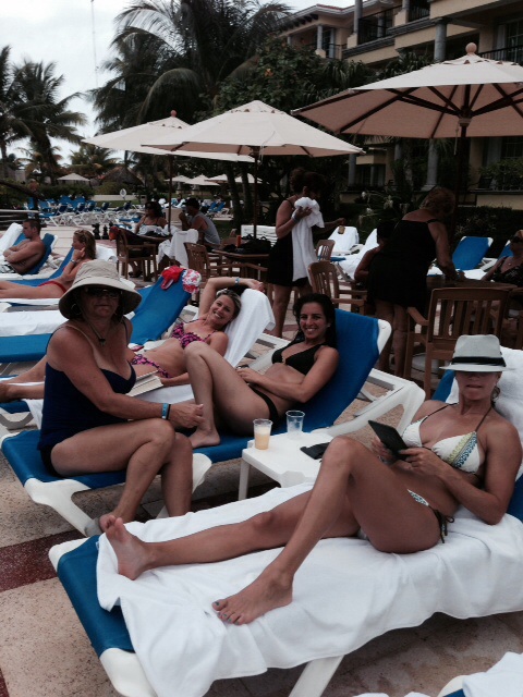How my daughter, niece and daughter-in-law could bask in the sun for hours at a time…not me I tried for one minute and my skin began to sizzle like a slab of bacon. That’s my sister sitting on the end of my niece’s lounge chair.