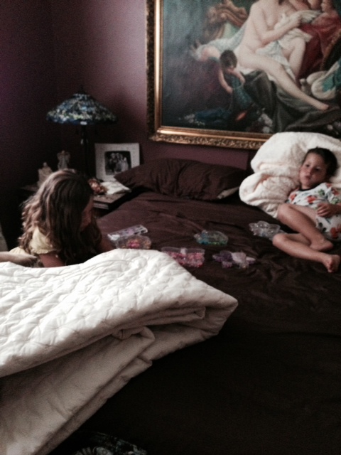 Yes, this sleep over morning turned out to be a precious morning experience with these two. In a matter of moments they both went from quiet jewelry making to under the bed time.