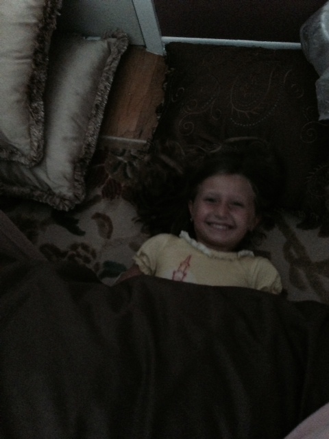 It was at this moment that I realized this is going to be a different type of sleep over morning. Christian and Sophie throw down the pillows and began to enjoy their under the bed experience.