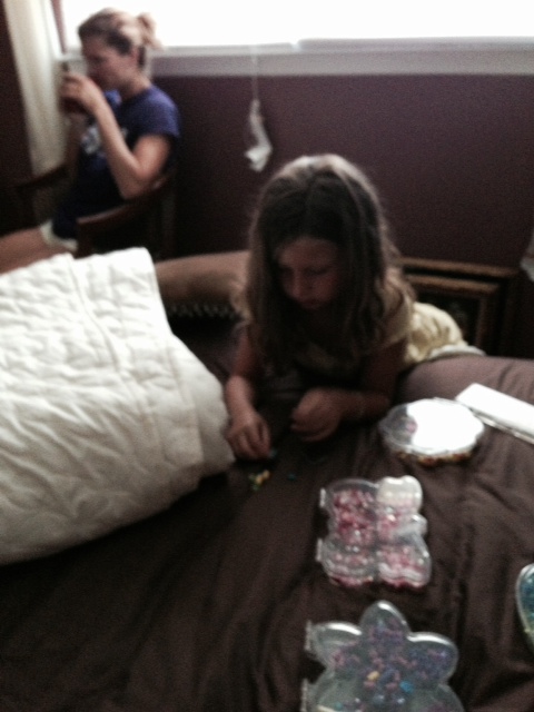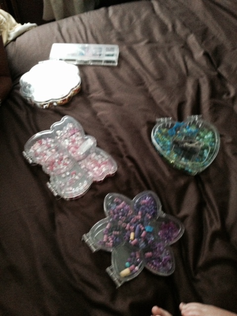 But on this particular sleep over morning, Sophie took out her jewelry kit. A kit with all different beads and strings to make whatever type of jewelry she would want to have.