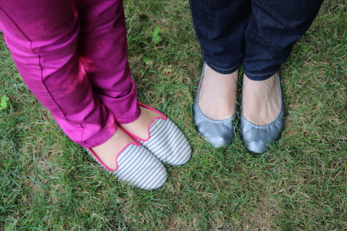 There is always room for another pair of shoes. I am so happy with my new Tieks Ballet Flat, they are flexible and durable at the same time. Next to me is my granddaughter wearing a sweet striped slip-on by Splendid for Stride-Rite.