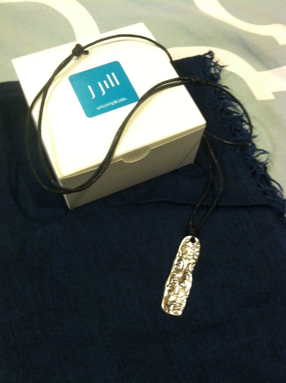 Here is a lovely Pure Jill washed texture scarf. I love the color dark knight blue!! How beautiful is this artisanal pendent necklace, which I can wear day and night. Just perfect.
