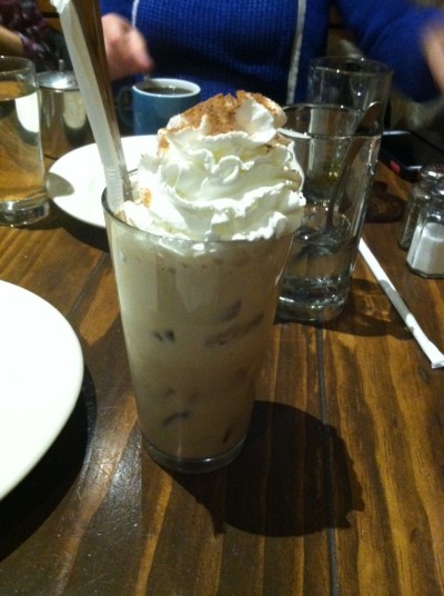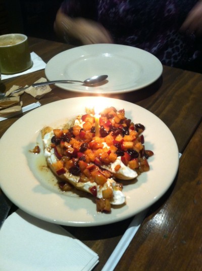 We shared a Tassie (2 grilled crostini topped with cool Greek yoghurt, fresh flambéed apples and grapes with a touch of honey and cinnamon) and I got the Australian Ice Hot Chocolate.