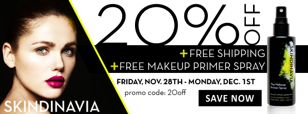 This Cyber Monday SKINDINAVIA is offering a FREE Makeup Primer Spray + FREE Shipping + 20% off with code 20off.