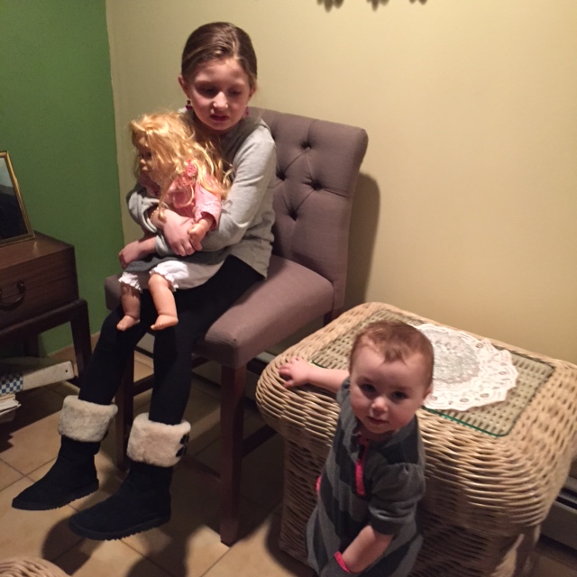 Even Christian was pretty quiet this evening. For some reason he decided to make sure Emma’s baby carriage is rolling and able to hold her baby doll.