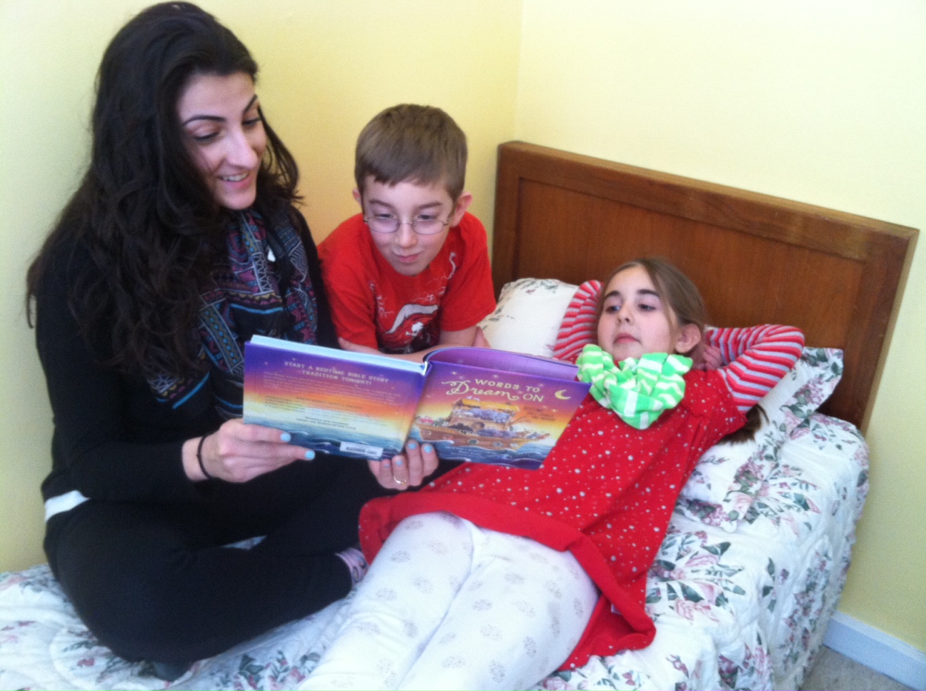 Words To Dream On is a lovely book filled with Bible stories and prayers that can be read anytime of the day. My niece Sandra is reading the story of a mighty man of God Caleb to her cousins, which happens to be the name of their baby brother who is napping right now. The book is filled with beautiful illustrated photos the kids like to look at and study too.