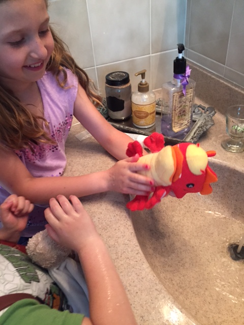 here sits Scorch the Dragon and Harper the Hippo…The grand kids couldn’t get enough soap in the sox…Soapsoxs are antimicrobial Terry Cloth Bath Sponges. They can go from playtime to bath time in an instant. They are the next generation of wash cloths.