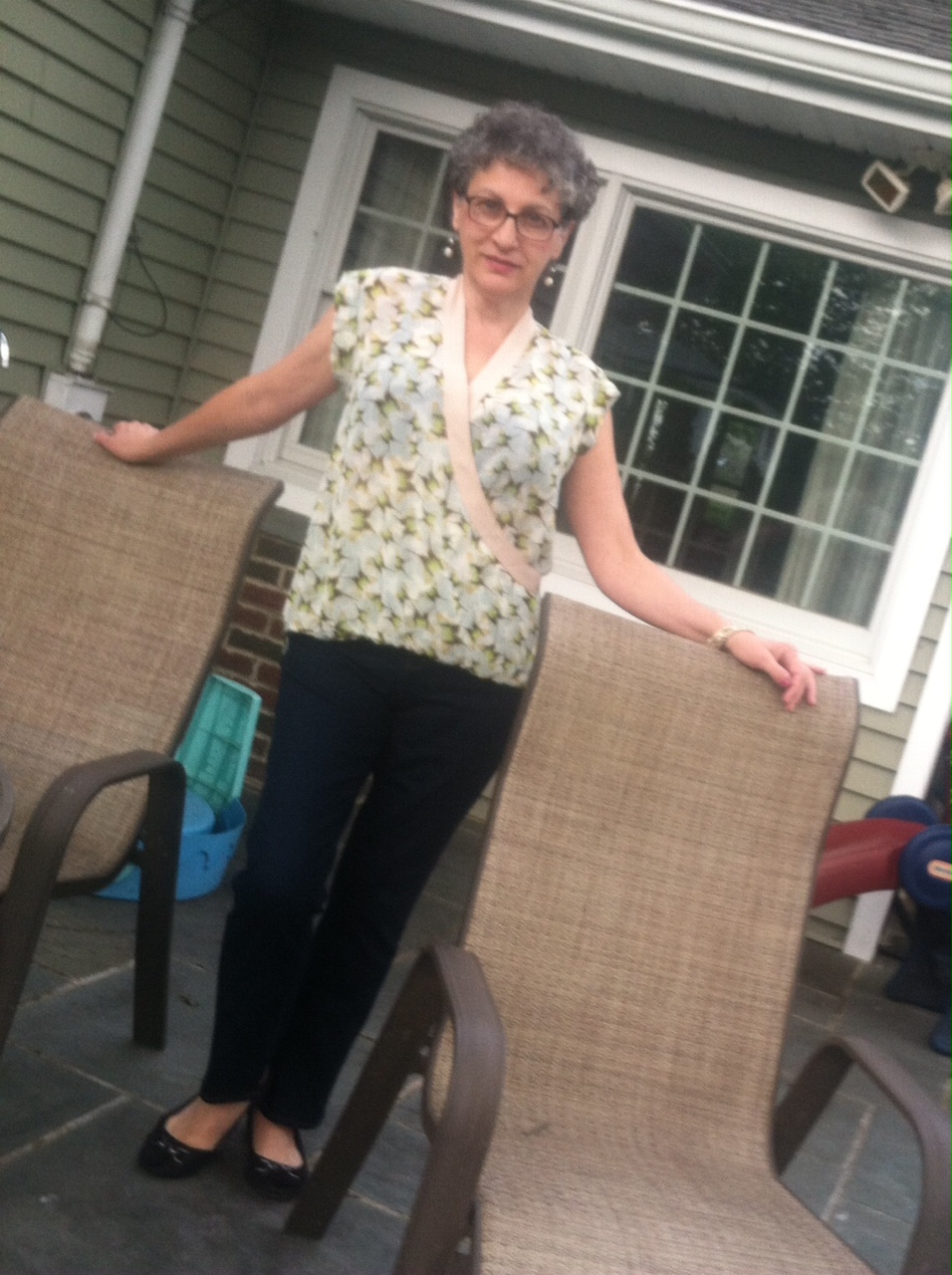 Float like a butterfly. Love this CABI butterfly wrap top with elasticized bottom and a hint of a sleeve, making it so comfortable to wear. I am wearing it on jeans today and I wear it with a white denim skirt too. Summertime is easy!!