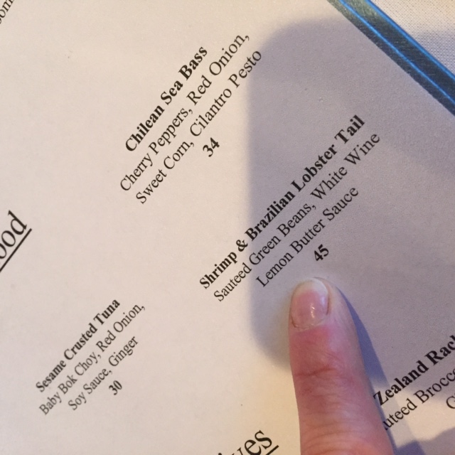 The menu listed a variety of meats and fishes…All fresh fish not farmed…this was important to my parents. See they just learned the difference between farmed and fresh fish and I have not stopped hearing about it ever since.