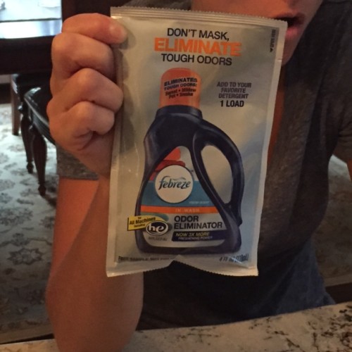 Odorless towels, odorless socks just by adding Febreze Odor Eliminator to my wash.