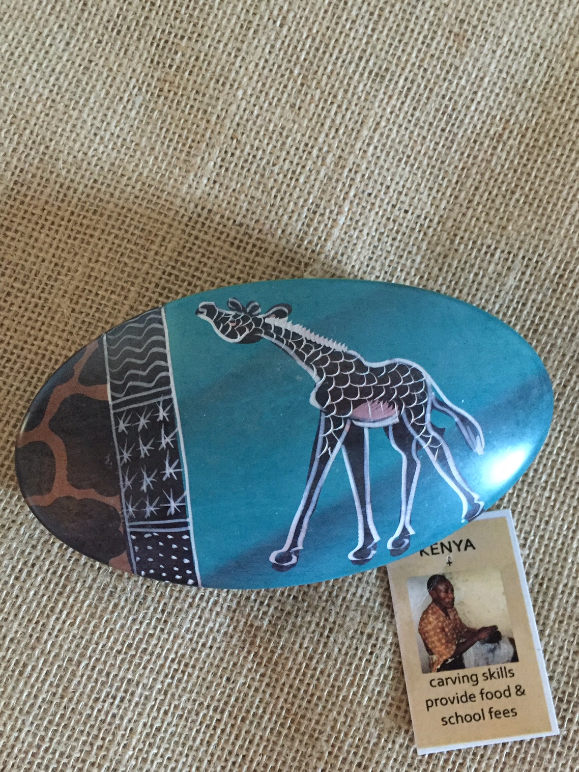 The hand-carved African Soapstone Box is a perfect place to store necklaces, rings and other trinkets. This ornate handmade gift is etched by talented artisans in Kenya who are using this sustainable resource to lift themselves and their families out of poverty. $85