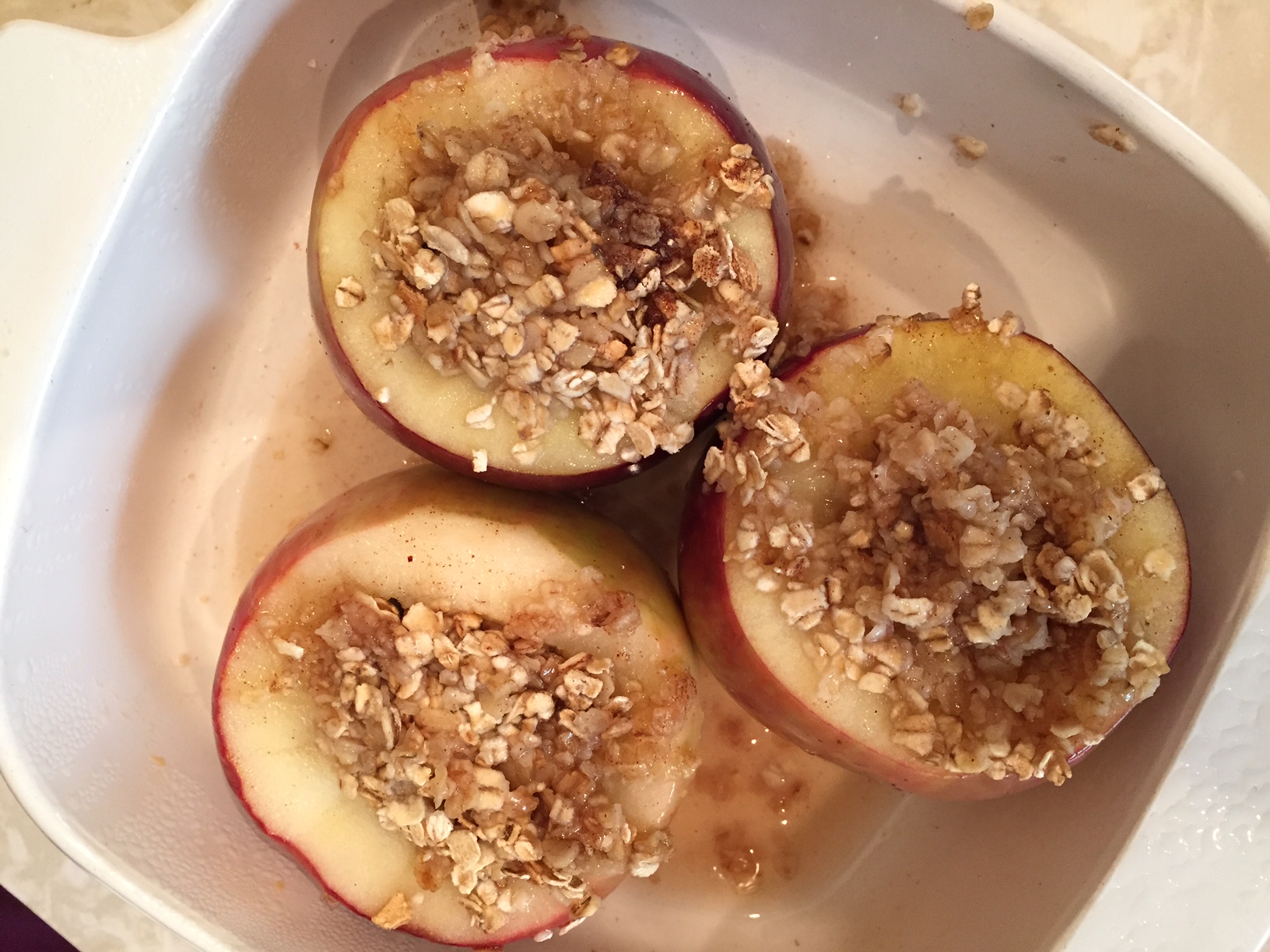 2- Carefully core the apples and place a little bit of oatmeal inside and a dab of butter on top.