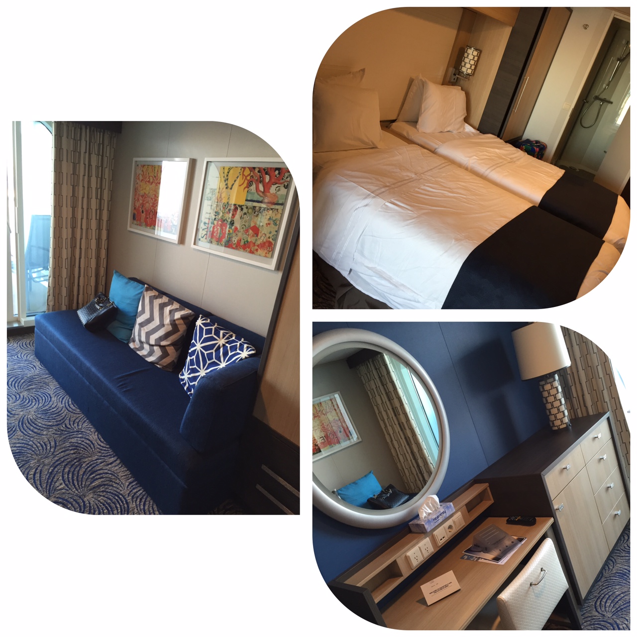 This is the room we slept in for 2 nights. Loved the single beds, toss and turn all night long and bother no one. The couch is a pull out to sleep some more. We enjoyed a patio, T.V. and Voom the fastest internet at sea.