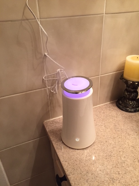 Ultrasonic diffuser features a 3-color changing LED light and UL adapter.