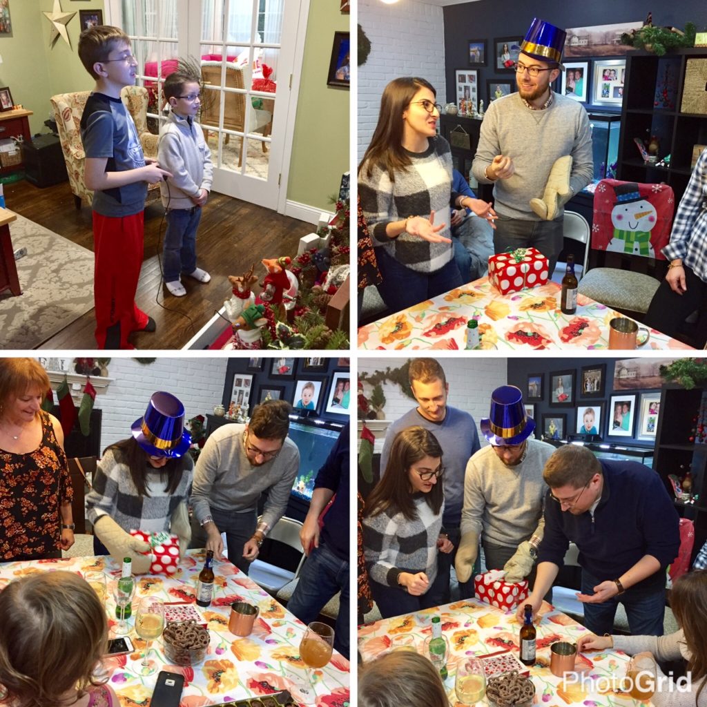 We had a lot of fun playing games lots of laughing, yelling and trying to cheat a little. Just a little., they wanted to use their teeth to open the gift Ha!!