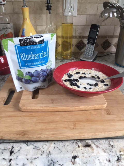 I start off the day with Stone Ridge Blueberries by adding the dried fruit to my morning oatmeal