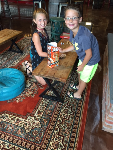 A beer barrel table gave my husband a few moments of alone time. Until, the kids decided to take over with their juices drinks and super pretzel.