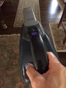 And with one click of a button the vacuum converts to a hand-vac. A hand-vac you can quickly access to vacuum curtains, couches, chairs, pillows, etc…