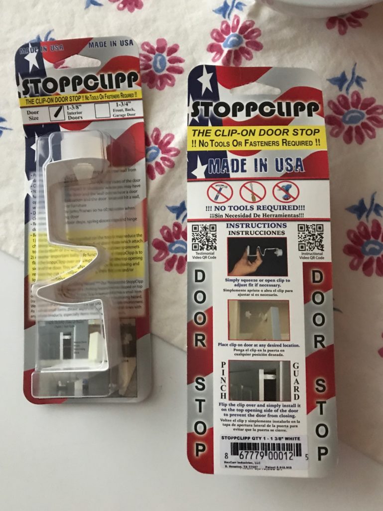 The StoppClipp is available in two finishes: white and stained to match any door. They are sold at The Home Depot.