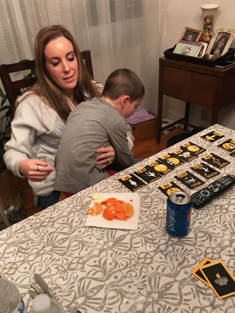 Happiness is when my daughter and her family come to visit and we all play a fun card game. Stuff Happens is a great card game for everyone over the age of 13. My grandson sat with my daughter and helped his mom play.