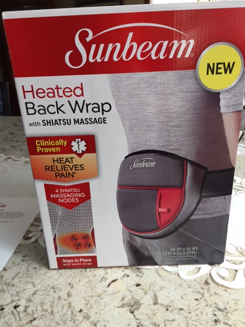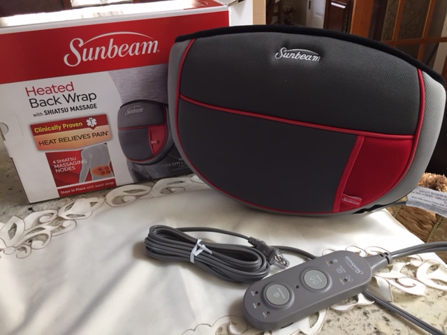 Sunbeam’s Heated Back Wrap with SHIATSU MASSAGE is clinically Proven to relieve lower back pain. Sunbeam’s Heated Back Wrap with Shiatsu Massage has 4 Shiatsu massaging Nodes. Pad stays in Place which means you don’t have to stay in place. The heat from the wrap helps to warm and relax those hurting muscles while the kneading action massages the tight, injured muscles.