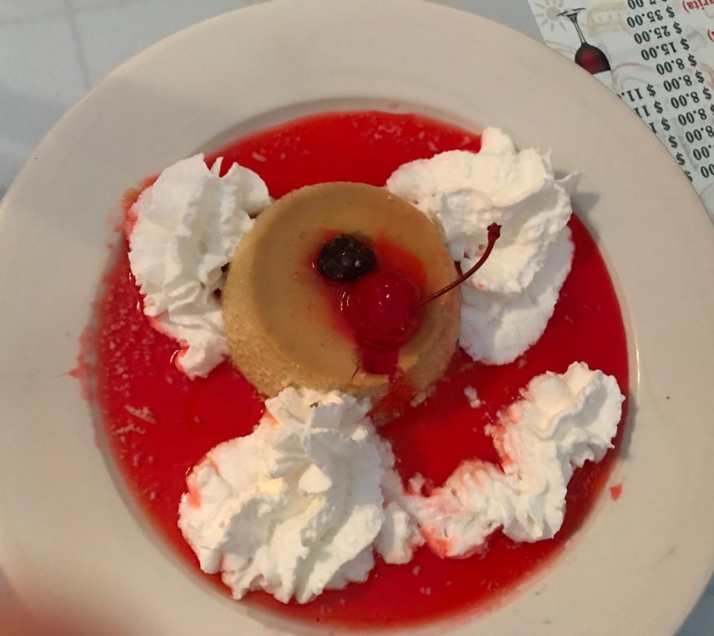 We started off with a small pitcher of Red Sangria, which happens to be our favorite fruit!. Munched away on the salsa and fresh fried nacho chips, this being the true test of self control, we lost so we decided no starters today and we ordered our main dish. My sister got the Porgie Fish which was amazing, I plan to order it next time. My mom went for chicken, Pollo A La Francesa in lemon sauce and I enjoyed and gobbled up the Shrimp in Garlic Sauce, each meal came with its’ own salad, rice and refried beans.